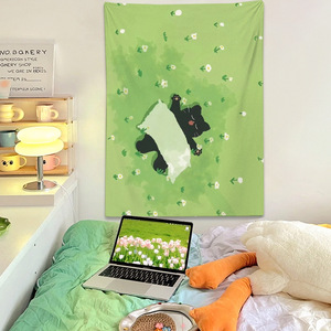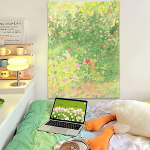 奶油风客厅装饰画ins小清新绿色风景装饰卧室挂布公寓宿舍背景布