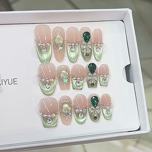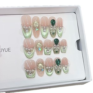 Nai Zi 手作りウェアラブルマニキュア夏の新エメラルドジルコンダイヤモンド愛純粋な欲望気質キャットアイマニキュアステッカー