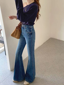梵思羽2025秋季新款高腰复古显瘦喇叭牛仔裤女小个子大码马蹄裤