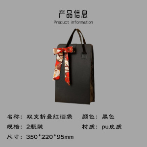 红酒手提袋葡萄酒两支装新款PU酒袋可印logo商务礼品包装礼盒通用