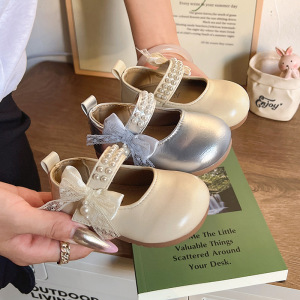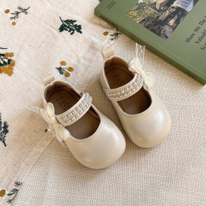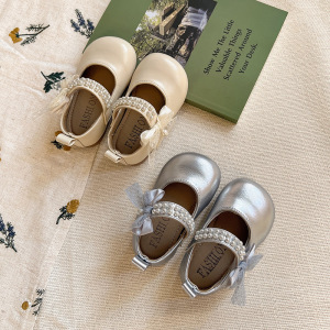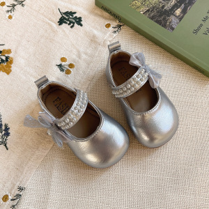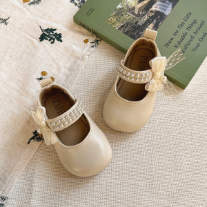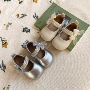 女宝宝小皮鞋2025新款日系蝴蝶结公主方口单鞋防滑婴儿软底学步鞋