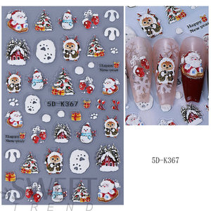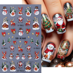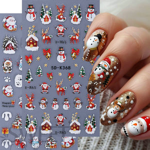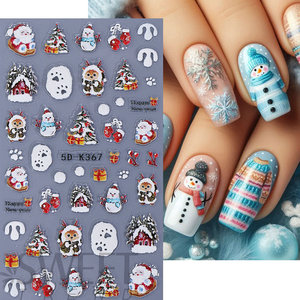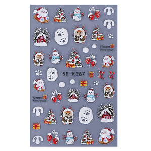 クロスボーダークリスマスエンボスネイルアートステッカー 5D 立体漫画サンタクロース雪だるまスノーフレークネイルステッカー紙カード付き