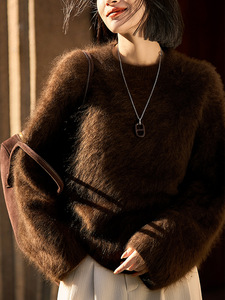 重磅高级感皮草拉绒羊绒针织衫女2025秋冬季新款时尚雾感针织毛衣