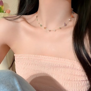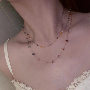 「Meet the Rainbow」ドーパミンカラフルなスクエアストーンネックレス、夏の甘くて絶妙で多用途な積み重ね可能な鎖骨チェーン