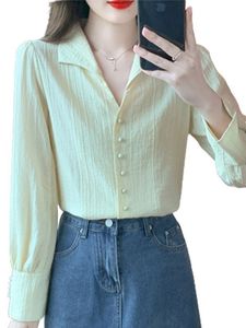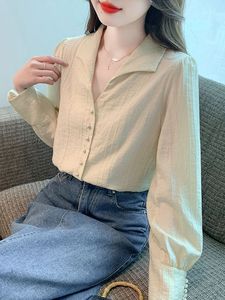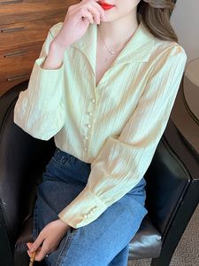 秋装新款宽松肌理感显瘦长袖别致漂亮小衫2024设计感翻领衬衫女