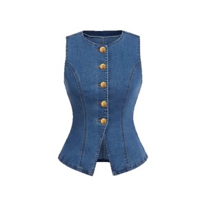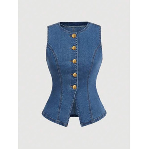 女士无袖牛仔外套上衣金色纽扣商务休闲女装2025新款跨境