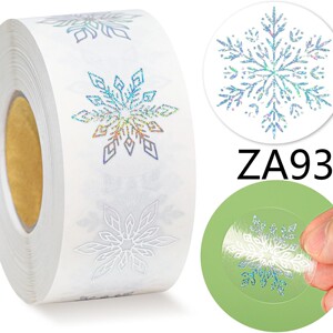 500张金箔雪花贴纸卷透明全息圣诞标签圆形自粘圣诞节冬季信封贴