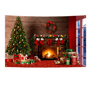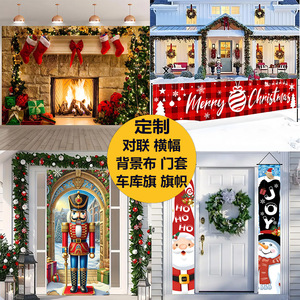 Amazonクロスボーダー新しいクリスマスカプレットドアカーテンお祭り雰囲気アレンジメントクリスマスフラッグ背景布バナー