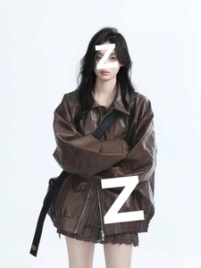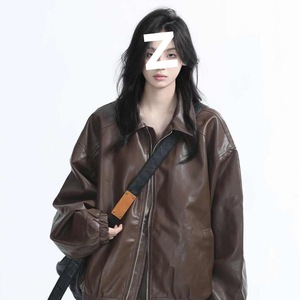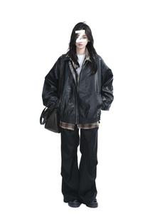 复古机车服黑色皮衣外套女春秋重磅宽松夹克上衣一件起批【厂家】
