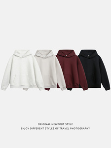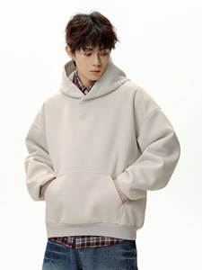 380 グラムヘビーウェイトベーシックスプライシングフード付きスウェットシャツメンズ秋ショートボクシートレンディブランドルーズソリッドカラーアメリカンパーカー