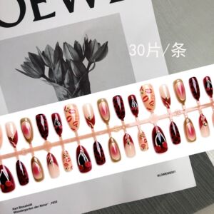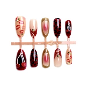 ブラッシュリップチェリーレッドホットガールピュアデューティーウェアラブルネイルアートヨーロッパとアメリカのクロスボーダー外国貿易ネイルアートパッチヒョウ柄