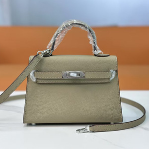 パームプリント ミニケリーバッグ キャンバス ワイドショルダーストラップ 本革 レディース ロックハンドバッグ ショルダー クロスボディバッグ