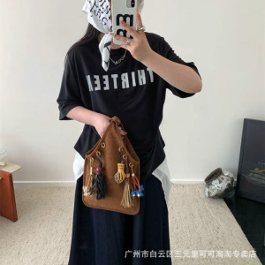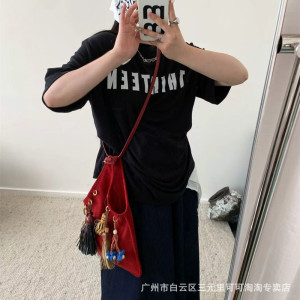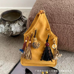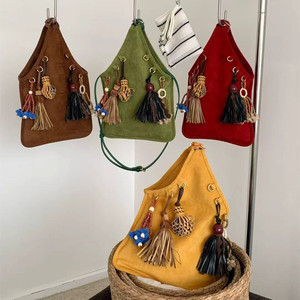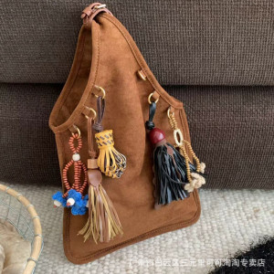 ニッチデザイン第一層スエード本革スエードハンドバッグ2025新しい人形ペンダントタッセルクロスボディバッグ