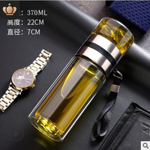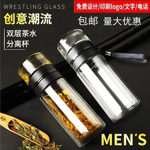 摔不烂钢化玻璃杯耐摔高温硼硅双层玻璃杯保护套男士茶杯