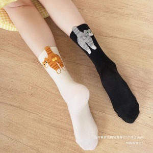 猫の卵、かわいい猫、オレンジ猫のお尻、猫のシンプルな日本製ミッドカーフソックス、通気性のあるカップルソックス、夏スタイルの通気性のあるカップル