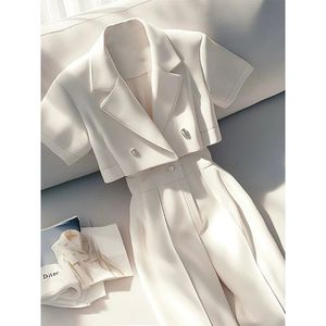 ヨーロッパのストリートファッションと年齢を軽減するハイエンドのプロフェッショナルな小さな香りの白いトップとパンツのスーツの夏服のセット
