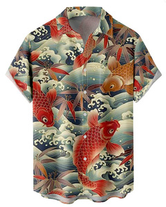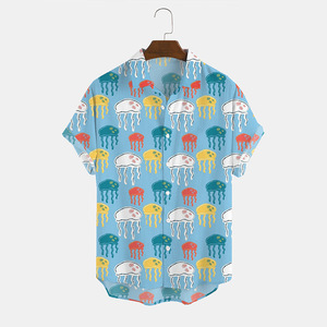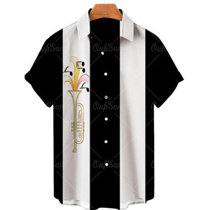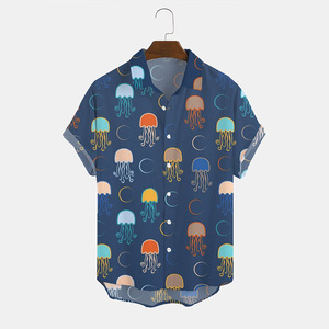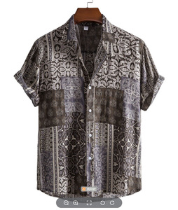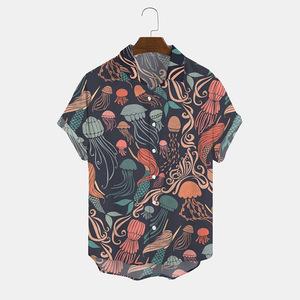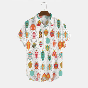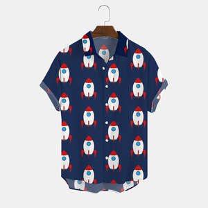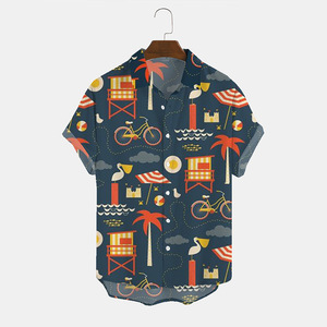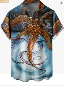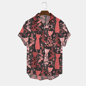 ヨーロッパとアメリカの新しいメンズルーズ3Dプリント半袖シャツファッショナブルなカーディガンラペルメンズ大きいサイズシャツ在庫なし