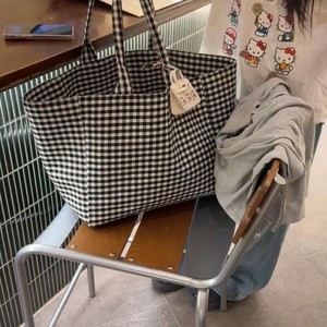 夏のファッション文学怠惰なスタイルのショルダーショッピングバッグ今年人気の大容量チェック柄キャンバストートバッグ