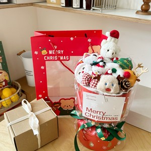 SD012-クリスマス帽子クマハグブルードールブーケ+ギフトバッググリーティングカードライトストリング