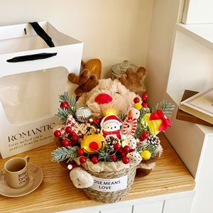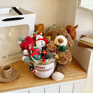 SD015-小さな赤いクリスマスベアの毛糸ブーケ+ギフトバッグ+グリーティングカード+ライトストリング