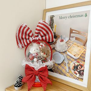 SD013-レッドチェック柄ヘッドバンドボボボール+ギフトバッググリーティングカードライトストリング