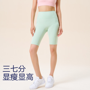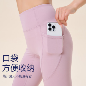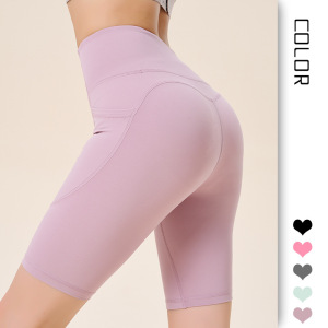 ナイロンヌードスポーツフィットネスランニングヨガショーツピーチヒップリフティング速乾性ハイウエストポケット5点サイクリングパンツ女性用