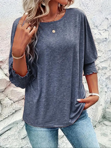 ヨーロッパとアメリカのクロスボーダー 2025 夏の新ファッションルーズラウンドカラーカフスロングバージョン大きいサイズ Tシャツ女性用