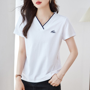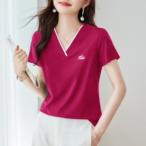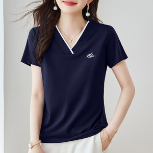 Vネックショルダー半袖Tシャツレディース2025新作夏人気レディースゆったり痩身お腹カバートップスTシャツ