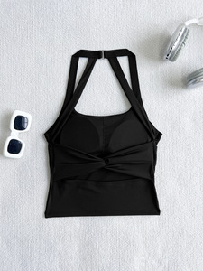 2025新款爆款跨境挂脖运动瑜伽无袖露背扭结上衣超柔锦纶健身户外