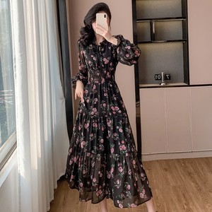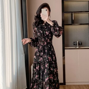 ヨーロッパとアメリカの良いもの香港スタイル韓国シックなフリル花柄ドレスホリデースタイル甘いウエストロングスカート