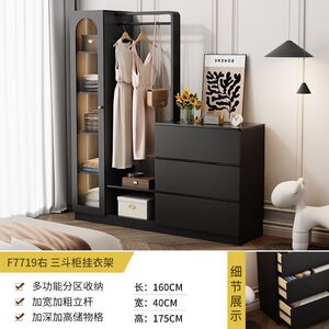 1.6米右三斗柜衣帽架带玻璃门扇