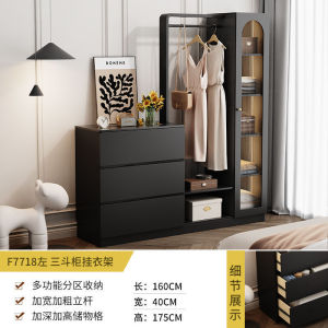 1.6米左三斗柜衣帽架带玻璃门扇