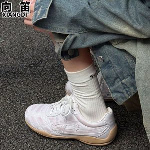 牛皮版复古德训鞋女款2025秋季新款软底阿甘鞋子休闲运动鞋赛车鞋
