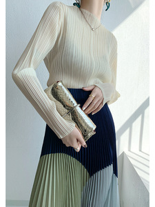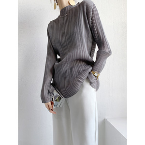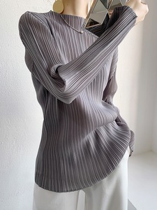 三宅长袖上衣女肌理设计感小众绝美纯色百搭休闲T恤打底衫薄款