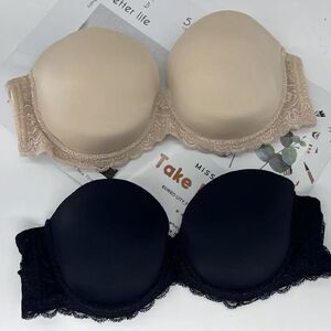 欧美跨境大码文胸光面带钢圈聚拢可拆隐形肩带抹胸式调整型内衣