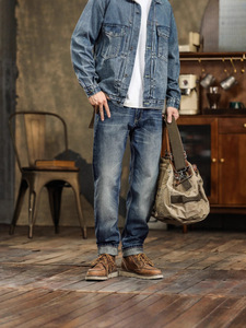 潮牌重工复古水洗赤耳丹宁牛仔裤男2025年春秋新款经典做旧直筒裤