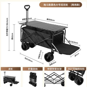 キャンピングカー + 折りたたみストールテーブル - ブレーキ付き大型オフロードホイール (ブラック)