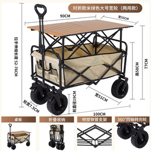 キャンピングカー + 折りたたみテーブル - ブレーキ付き大型オフロードホイール (ベージュグリーン)