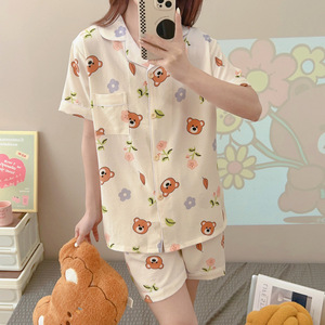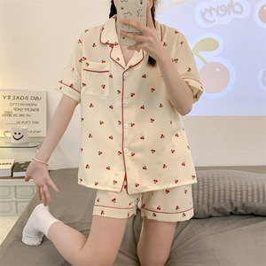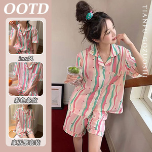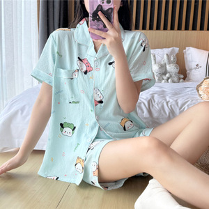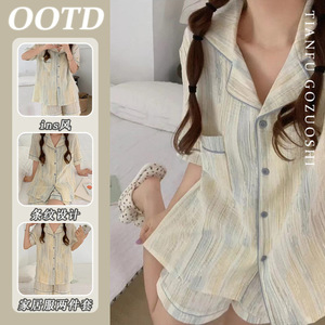 睡衣女夏季梭织泡泡棉皱布ins公主风可爱短袖夏天薄款家居服套装