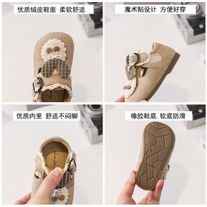 女の子の革靴春と秋の新しい漫画子供プリンセスシューズ少女英国スタイルビルケンシュトックシューズベルベットレザーソフトソールシューズ