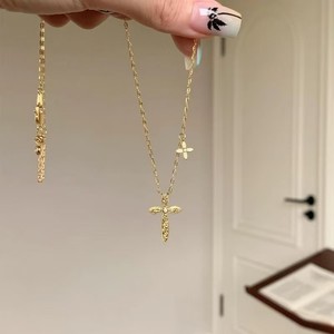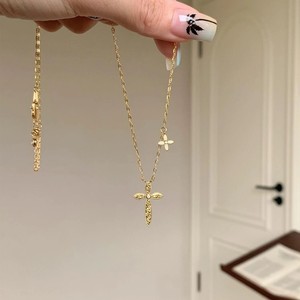 小红书同款vintage复古四叶草十字新款碎冰项链女时尚ins小众设计
