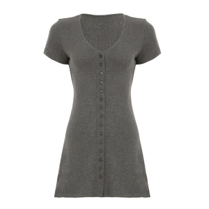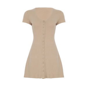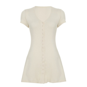 欧美v领优雅风长袖连衣裙跨境新款舒适百搭温柔少女风A字短裙女