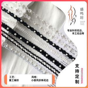 轻奢高级ins风珍珠花边diy小香风服装辅料服饰门襟黑白1cm编织带