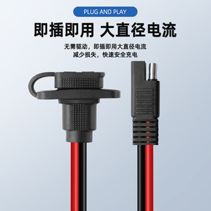 卸売sae電源コードソーラーパッケージ化された2穴側壁SAEプラグとダストキャップ防水接続ケーブル