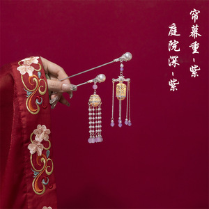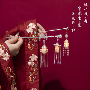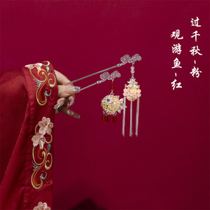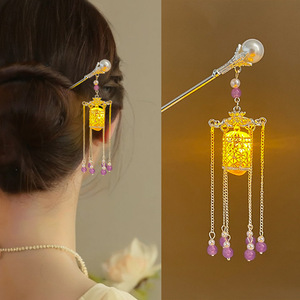 中秋会发光的灯笼发簪女古风汉服簪子后脑勺盘发钗新中式头饰发饰