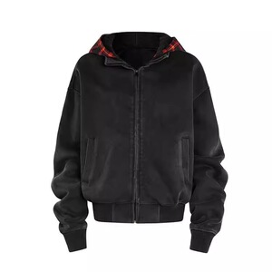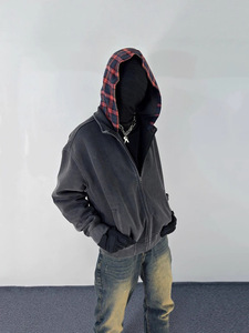 新しいアメリカンヘビーウォッシュフェイクツーピーススプライシングスウェットシャツジャケット男性と女性のカップル秋と冬のジッパーカーディガントップ