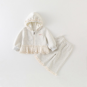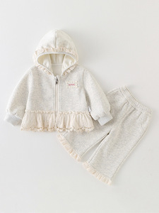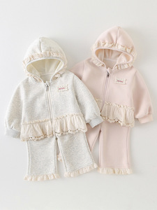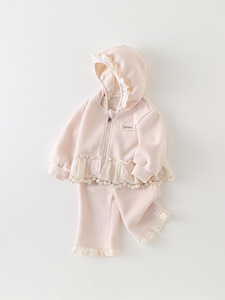 女童套装2025秋季新款女宝花边连帽外套裤子两件套婴幼儿衣服 a类