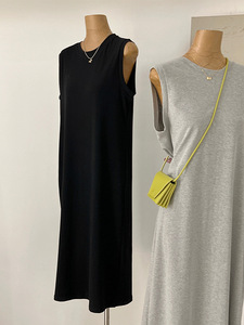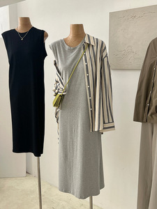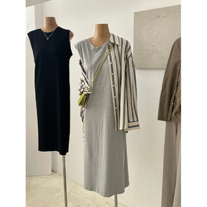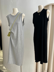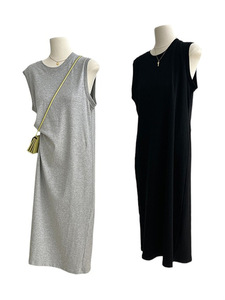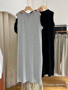 グレーコットンカジュアルベスト Tシャツドレス女性の 2025 夏の新しい怠惰なスタイル大きいサイズのルーズドレス