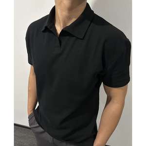 997HIDLIE ワッフルラペルポロシャツ半袖カジュアルメンズ夏無地通気性アメリカンスタイル