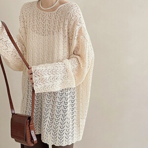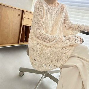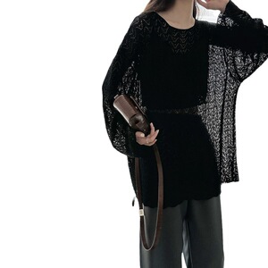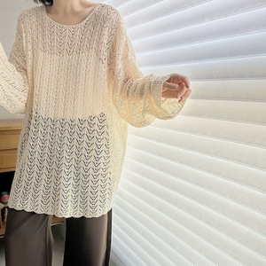 レイジースタイルルーズ長袖ニットブラウス2025初秋の新作レディースファッショナブルな中空スリットトップ女性用